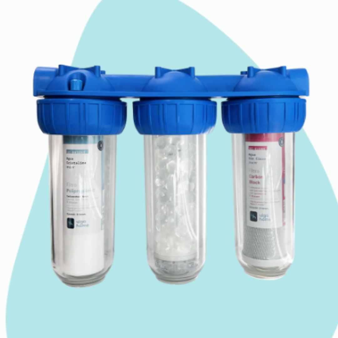 Este pack viene con 3 portafiltros y 3 filtros especializados: uno de polipropileno para capturar partículas finas (como arena y óxido), un filtro de carbón block para eliminar hasta el 90% del cloro y mejorar el sabor y olor del agua, y esferas de polifosfato que mantienen en suspensión el calcio y magnesio, previniendo la acumulación de sarro. 🌿